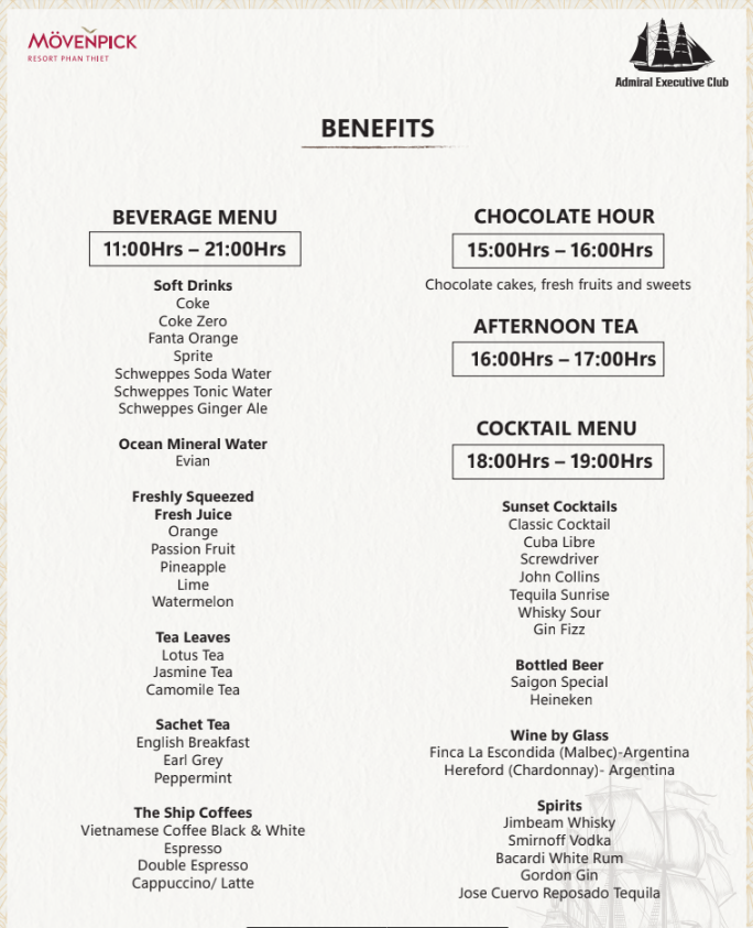 리조트에서 차로 가까운 거리에 NovaWorld Phan Thiet 골프장과 PGA Golf Ocean이 있습니다. 저녁에는 해변 바, 레스토랑, 클럽이 이른 시간까지 영업하며 편안한 베트남식 재미가 강조된 국제적인 엔터테인먼트를 제공합니다.