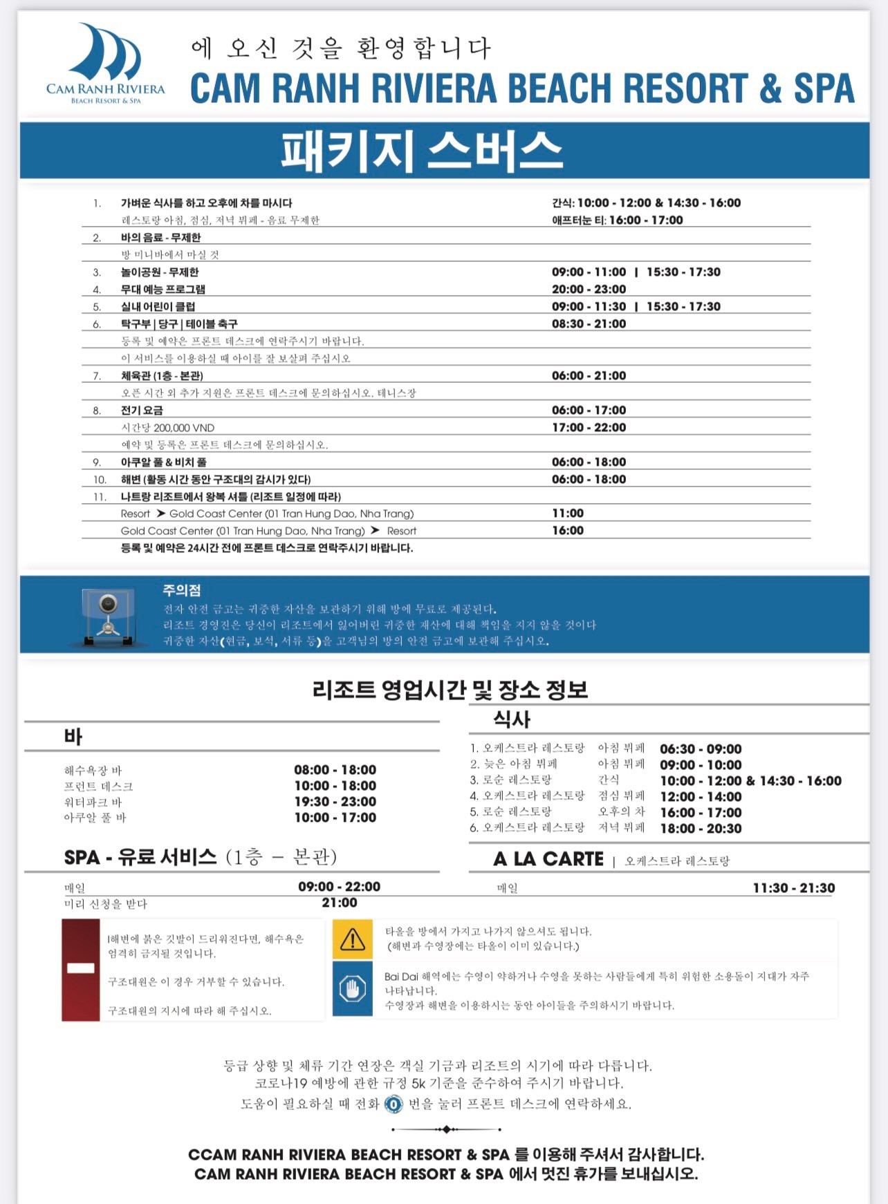 ◾ 리조트 ↔ 시내 무료 셔틀버스 제공