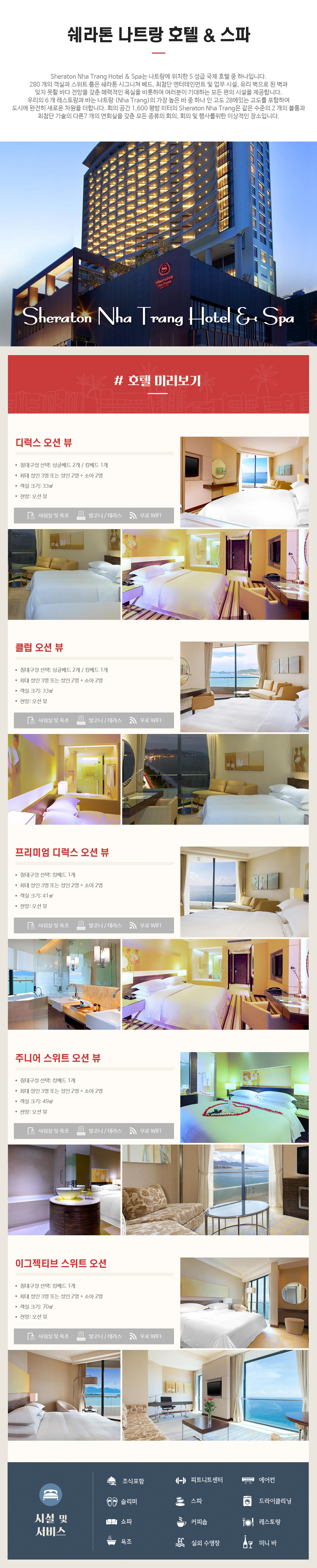 객실타입 : 디럭스 오션뷰, 프리미엄 디럭스 오션뷰, 주니어 스윗 오션뷰, 이그제큐티브 스위트 오션뷰, 이그제큐티브 스위트 파노라믹 오션뷰, 프레지덴셜 스위트